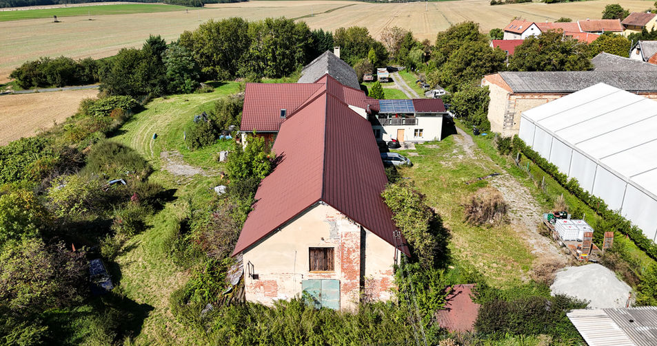 Na pozemku se dnes nachází částečně zrekonstruovaný objekt, který lze ihned využít nebo dále přestavět. V přízemí hlavní budovy se nachází byt o velikosti přibližně 60 m², v prvním patře další byt a téměř dokončený prostor o ploše 240 m². Součástí areálu je rovněž vybavená dílna s dvousloupovým zvedákem o nosnosti 3,2 tuny. Tyto prostory nabízejí okamžité možnosti využití pro firemní zázemí, sklady či dílnu, zatímco zbytek pozemku lze postupně zastavět podle již schváleného projektu.